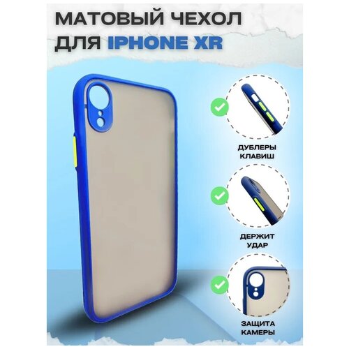 Противоударный матовый чехол для iPhone Xr (Айфон ХР) с силиконовой окантовкой и защитой камеры Темно-Синий