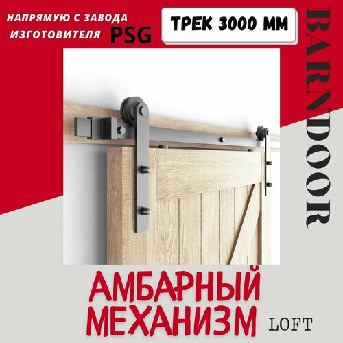 Амбарный механизм Barn Door для раздвижной подвесной двери шириной до 1300 мм. PSG. Направляющая 2.6 метра.