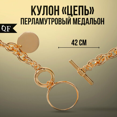 Колье Queen Fair, металл, ракушка, перламутр, длина 42 см, бежевый в золоте