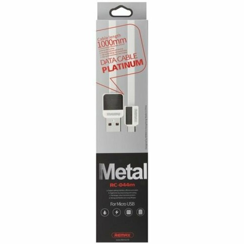 Кабель USB - микро USB Remax RC-044m Platinum, 1.0м, плоский, 2.1A, силикон, цвет: белый