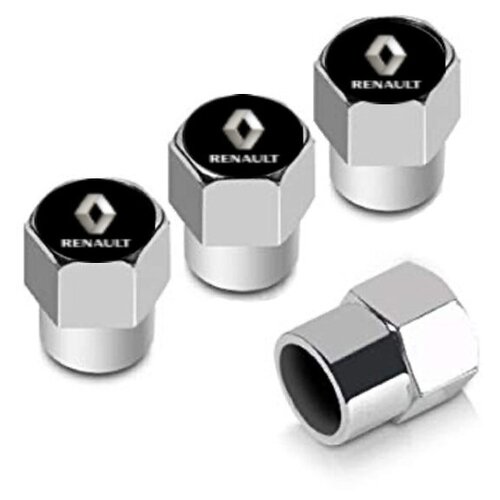 Колпачки шестигранные на ниппель "Renault" (Рено). Нержавеющий металл. Комлект из 4 штук.