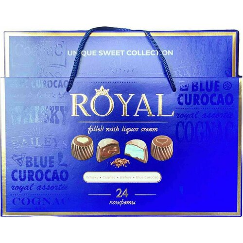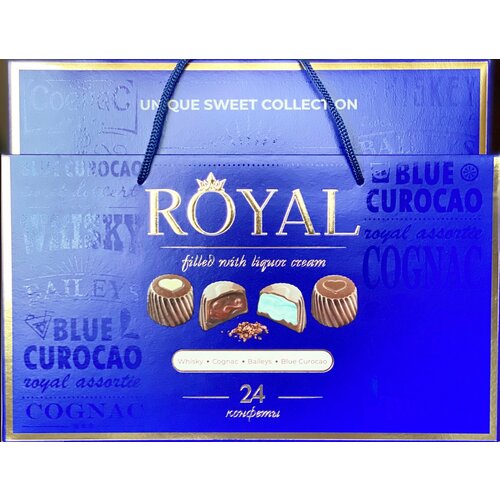 Конфеты ройял 370 г ассорти синяя коробка в сумочке