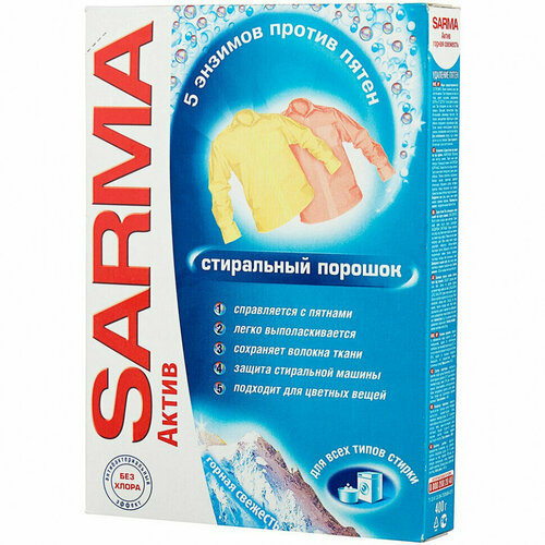 Стиральный порошок НК SARMA Актив для белого и цветного белья 400 г. Горная свежесть