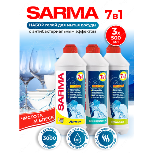 Набор гелей для мытья посуды Sarma Лимон 500 мл.+Свежесть 500 мл.+Яблоко 500 мл.