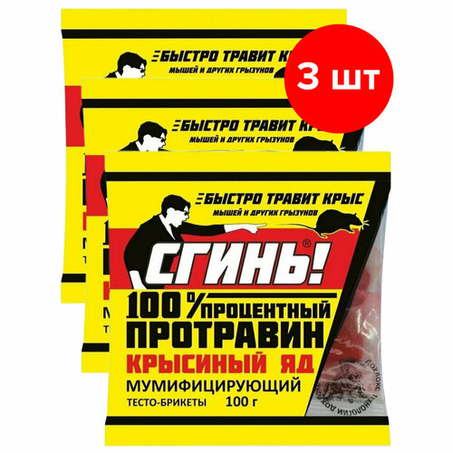 Тесто-брикеты от грызунов сгинь! 100 процентный Протравин Крысиный яд, 3шт по 100г (300 г)