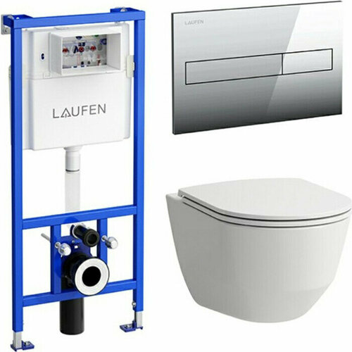 Комплект унитаза Laufen безободковый, с инсталляцией, кнопка хром, сиденье-микролифт (8.6996.6.000.000. R)