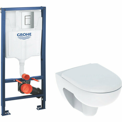 Комплект унитаза Geberit Renova с инсталляцией, кнопкой и сиденьем микролифт (500.801.00.1, 38772001)