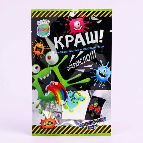 Конфеты кислые "краш", красящие язык со светящейся татуировкой, 8,5 г