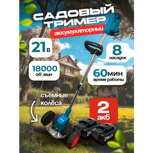 Триммер аккумуляторный садовый 2000вт, газонокосилка аккумуляторная мощная на колесах