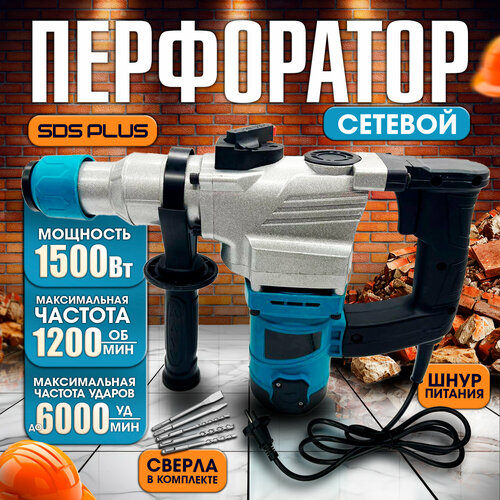 Перфоратор сетевой электрический ударный SDS-plus 1500вт, 1200об/ мин