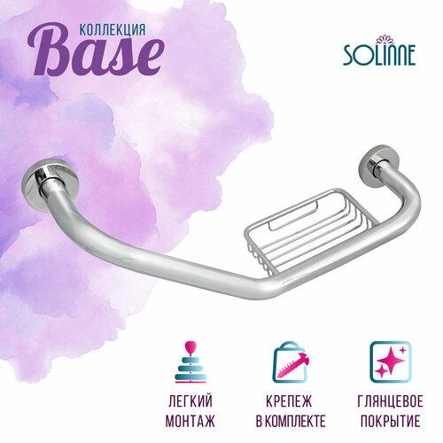 Поручень на ванны L-образный с мыльницей, угловой для ванной комнаты Solinne коллекция Base, нержавеющая сталь, хром, Арт: 2557.005