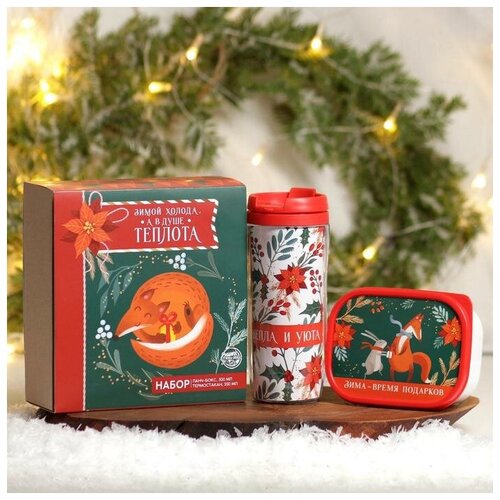 Подарочный набор «В душе теплота»: термостакан 350 мл, ланч-бокс 500 мл