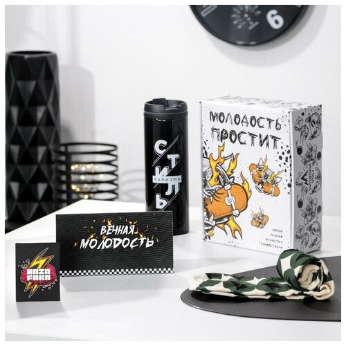 Подарочный набор «Молодость простит», термостакан, планер, открытка, носки
