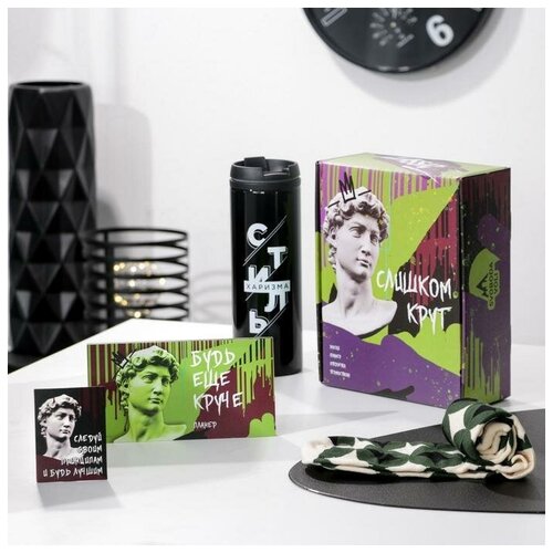 Подарочный набор «Слишком крут», термостакан, планер, открытка, носки