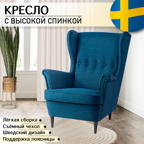 Кресло с высокой спинкой джеймс темно-синее