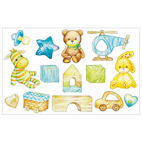 Детская интерьерная наклейка "Игрушки и кубики 2"/ Набор интерьерных наклеек на стену, мебель/ Наклейки для декора детской комнаты