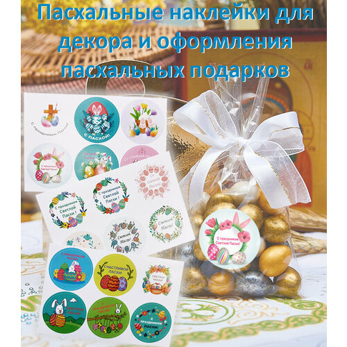 Пасхальные наклейки для декора и оформления пасхальных подарков, сладостей и куличей.