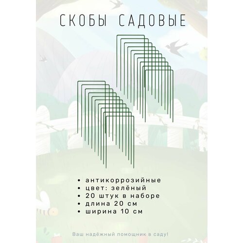 Скобы садовые для растений зелёные 20 штук антикоррозийные, ширина 10 см длина 20 см