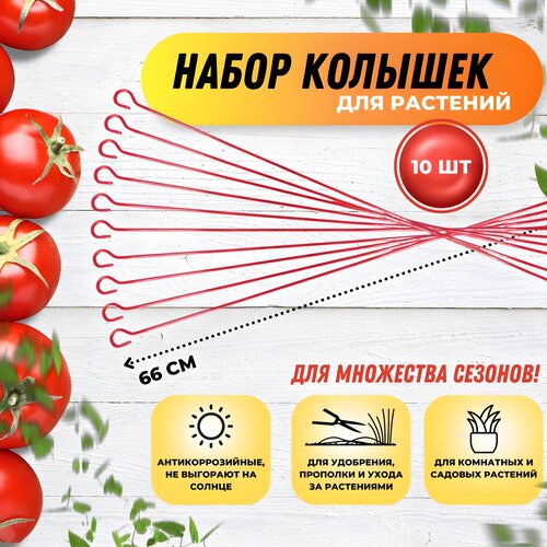 Набор колышки садовые для растений стальные 66 см красные 10 шт (для домашних и садовых растений)