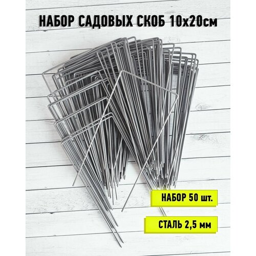 Скобы садовые (колышки садовые для парника) стальные ширина 5 см длина 22 см+ширина10 см длина 20 см набор из 2 видов по 10 шт. (всего 20шт.)
