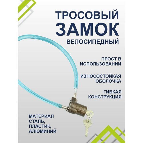 Замок тросовый Trodos 83204 велосипедный 8х1000, 2 ключа, зеленый