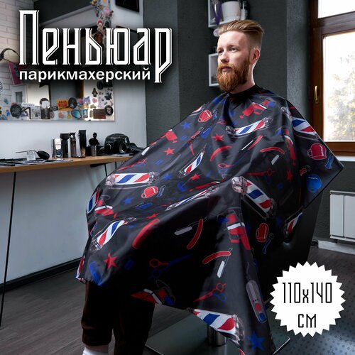 Пеньюар парикмахерский для барбера "Barber Shop - Salon", 160х140см, для стрижки волос, накидка