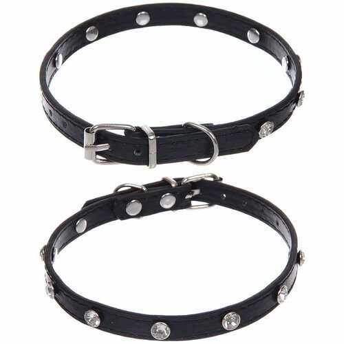 Ошейник для собак и кошек со стразами «На стиле», цвет черный, 1.5см, размер L, 39*44см (лейбл) Ultramarine