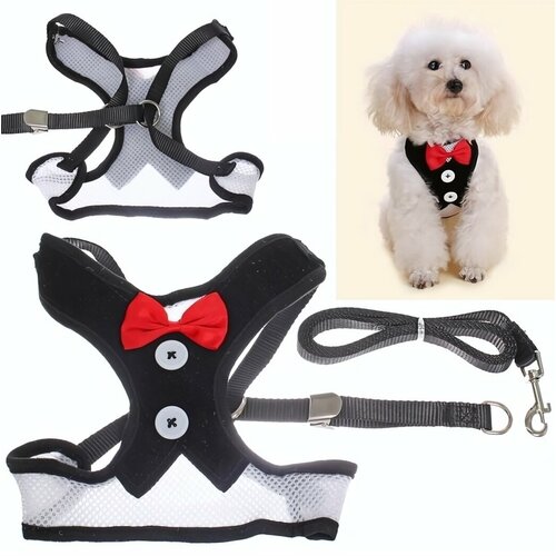 Шлейка с поводком для мелких пород собак «LAPUSIK», черная, размер L, комфортная Ultramarine