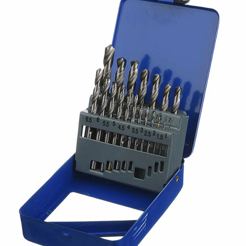 Набор сверл по металлу, 1.5-6.5мм (через 0,5 мм), HSS, 13 шт, металлический бокс, цилин. хвостовик, VertexTools