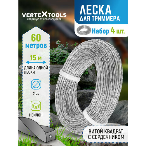 Леска для триммера VertexTools 2 мм 60 м витой квадрат с сердечником