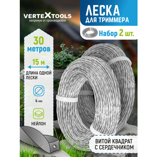Леска для триммера VertexTools 4 мм 30 м витой квадрат с сердечником