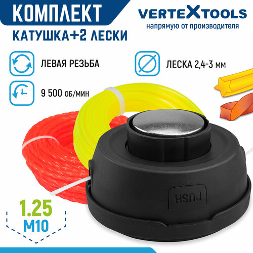 Катушка для триммера VertexTools головка T003 левая резьба M10x1.25 леска 3 мм