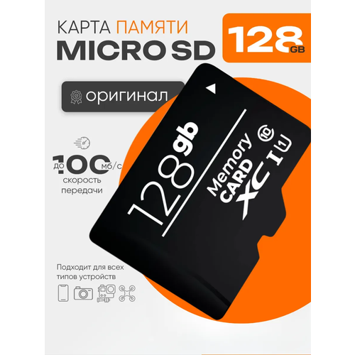 Карта памяти microSD 128Gb/128Гб класс 10 UHS (U3) A2 V30 для 4К, подходит для циклической перезаписи