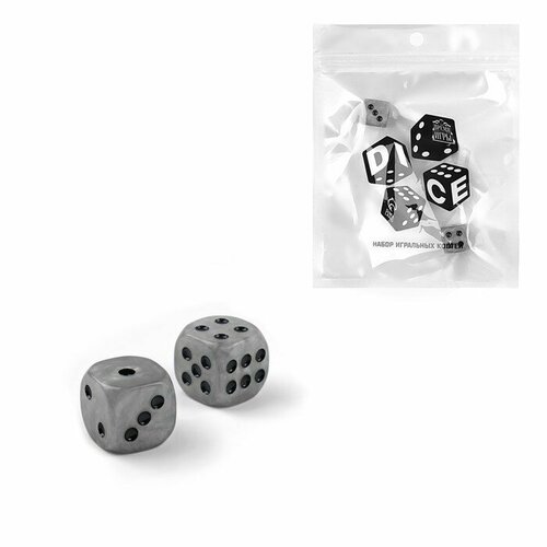 Кубики игральные "Время игры", 1.6 х 1.6 см, набор 2 шт, серые