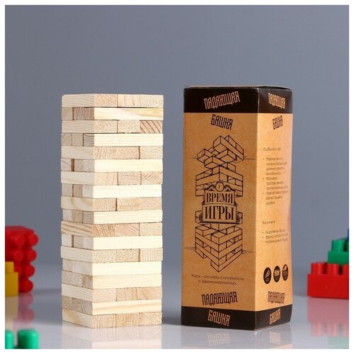 Падающая башня "Время игры", 20.5 х 6.3 см, 54 бруска, брусок 6.3 х 1.1 х 2.1 см