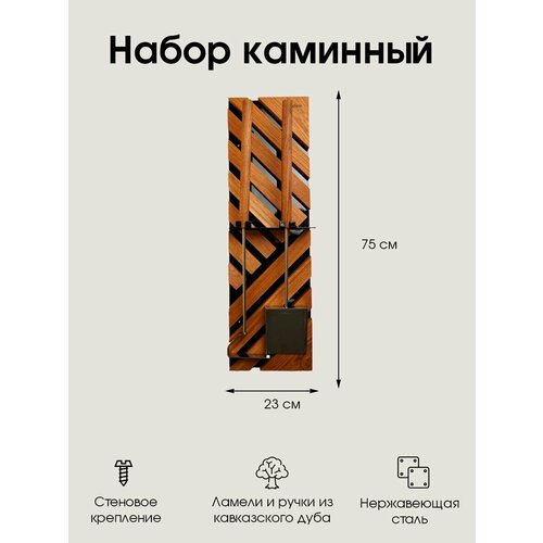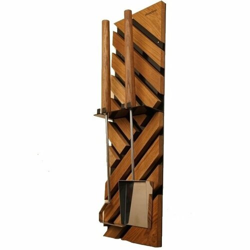 Набор каминный со стеновым креплением Woodson Rail из кочерги и совка, ручки и ламели из дума, основания из нержавеющей стали