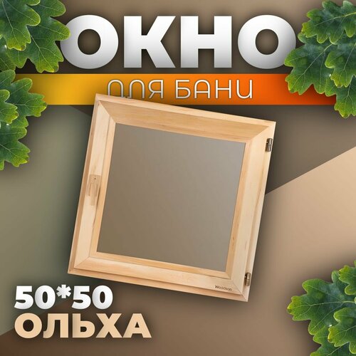 Окно деревянное для бани Woodson 50*50, стекло бронза, ольха