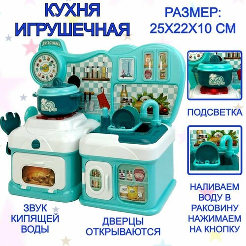 Кухня детская игровая для девочек с водой и набором посуды Kitchen, 25х22х10 см, плита, конфорка c подсветкой, озвучкой