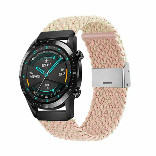 Универсальный нейлоновый ремешок для умных часов Samsung, Huawei, Amazfit, Honor 22мм/ бежево-розовый