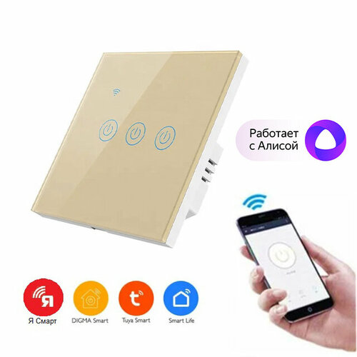 Умный Wi-Fi выключатель, сенсорный трехканальный, без нейтрали Ya-NN3G