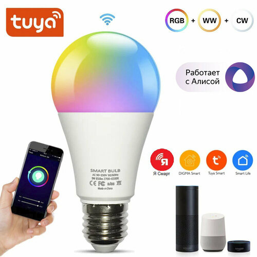 Умная Wi-Fi светодиодная лампа RGB+CCT, 9W, E27 Я смарт Ya-A60