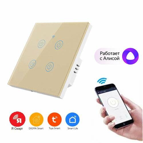 Умный Wi-Fi выключатель, сенсорный четырехканальный, без нейтрали Ya-NN4G