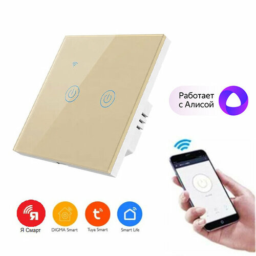 Умный Wi-Fi выключатель, сенсорный двухканальный, без нейтрали Ya-NN2G