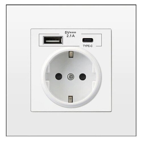 Розетка 220V с USB и C-TYPE белая A6-USB-C-TYPE-W