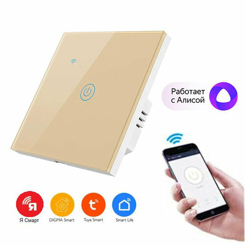 Умный Wi-Fi выключатель, сенсорный одноканальный, без нейтрали Ya-NN1G