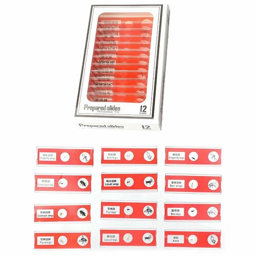Набор микропрепараты для микроскопа 12 образцов "Насекомые"