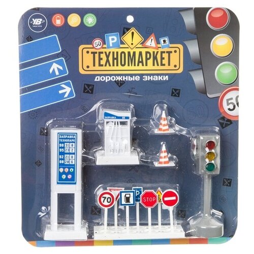 Набор светофор на бат. с дорожными знаками серииТехномаркет, звук, свет, CRD26,5x5x см, арт. ZYF-0055