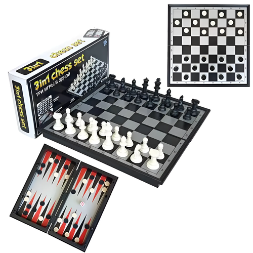 Детская настольная игра Шашки, нарды, шахматы магнитные 3 в 1