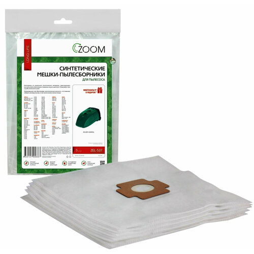 Синтетические мешки-пылесборники ZOOM ZEL-537 , 5 шт + микрофильтр для пылесоса