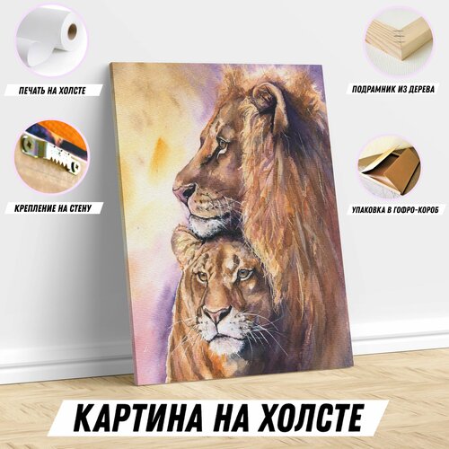 Картина на холсте Лев и Львица постер для интерьера 50*70